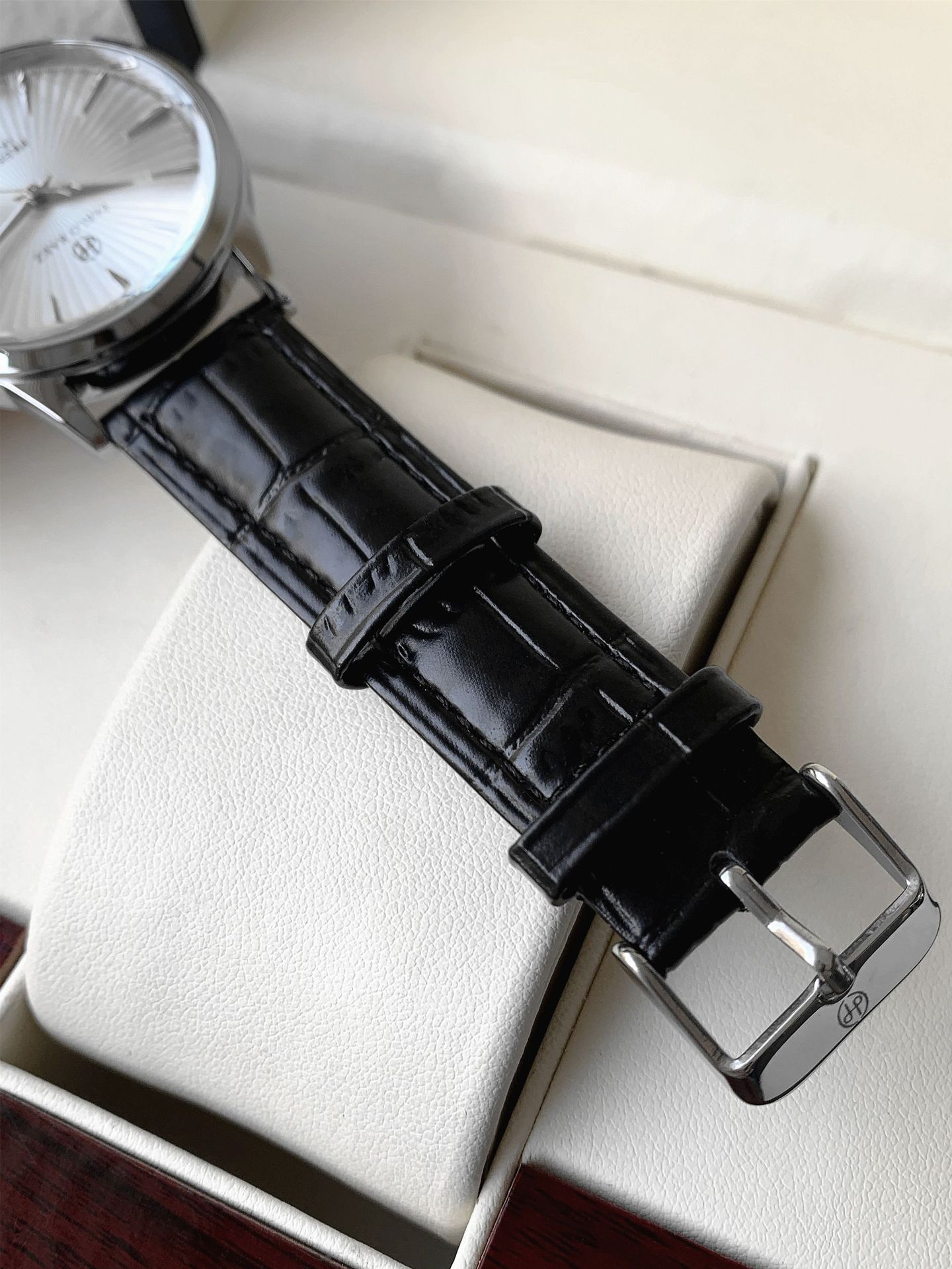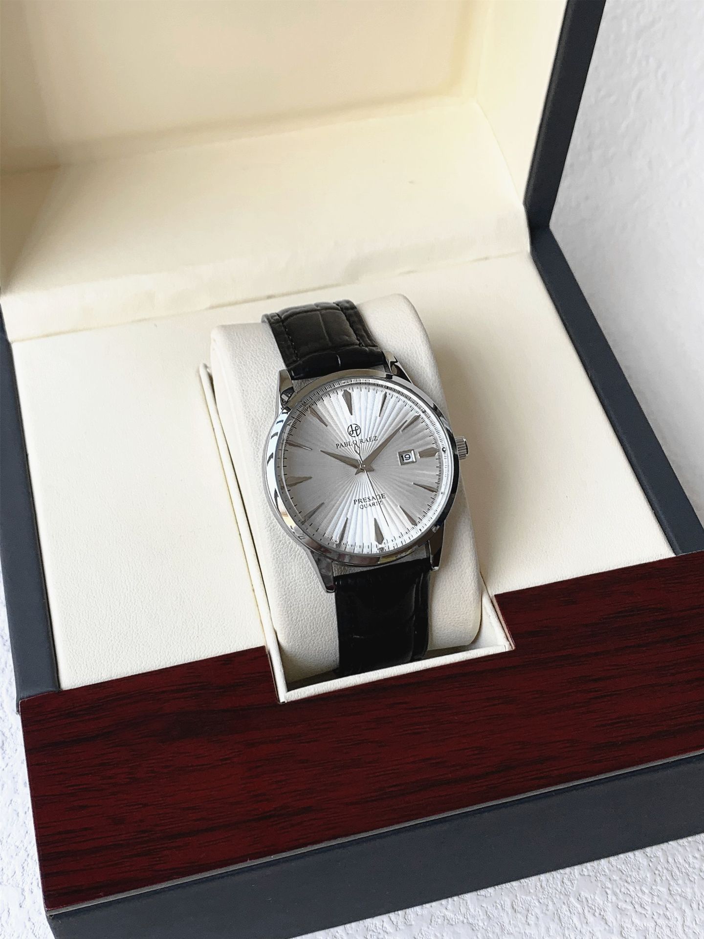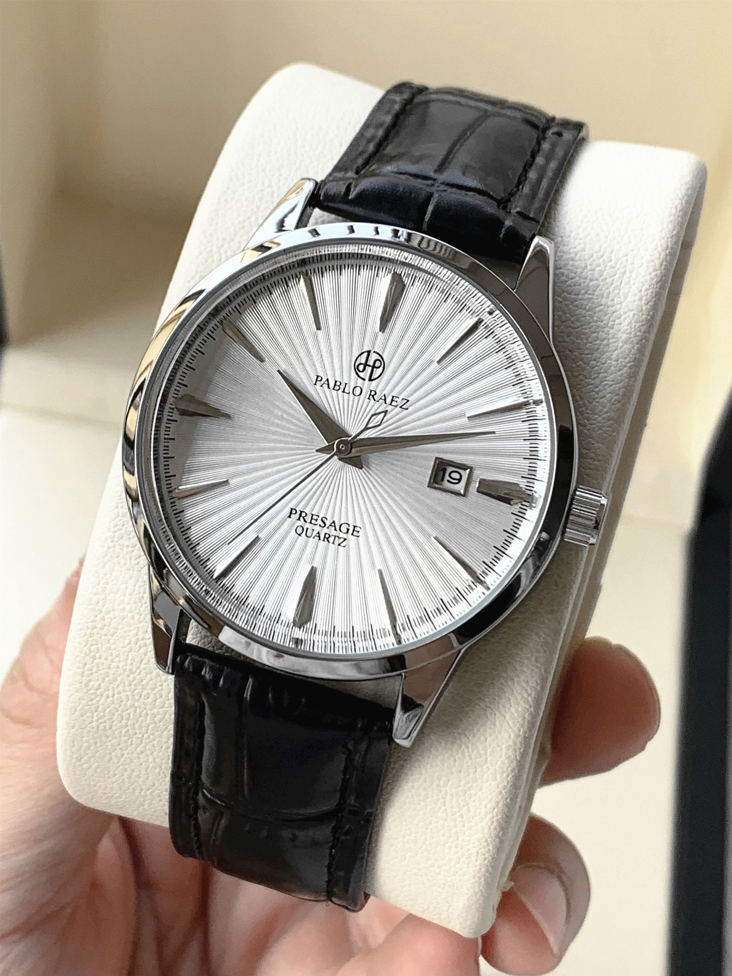 Color: Silver case with a black strap and white dial, silver case with a black strap and black dial, silver case with a brown strap and white dial